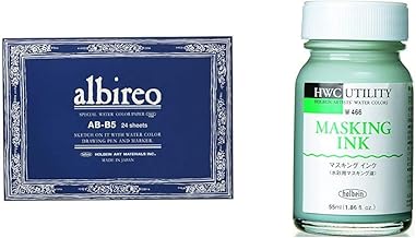 ホルベイン アルビレオ水彩紙 ブロック 中紙218g(並厚口) 中目 24枚とじ 270-233 B-B5 & ホルベイン 水彩用メディウム マスキングインク W466 55ml【セット買い】