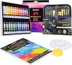 MEEDEN 水彩画キット 37点 24x12ml 水彩絵筆 水彩画パッド 水彩画パレット&アートスポンジ 初心者 学生 子供に最適