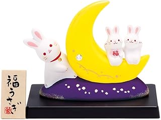 錦彩福運月うさぎ(福まねき親子・小)(クリスタルガラス付) 1333