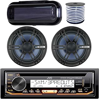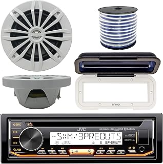 JVC KD-R97MBS In-Dash Marine Boat Bluetooth Radio USB CD Receiver Bundle + Cover With Pair Enrock 6.5 White Stereo Speakers + 18g 50FT Marine Speaker Wire by JVC
