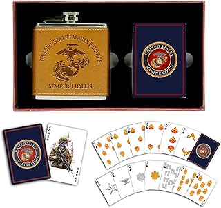 Marine Corps Flask and Playing Cards Set by The Marine Corps Gift Shop