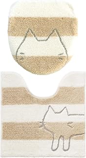 Proバイダー キャットマ トイレマット セット 4点 (トイレマット+吸着タイプ フタカバー + スリッパ + ペーパーホルダーカバー ) アイボリー 猫