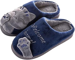 [HONGJING] レディース メンズ カップル ルームシューズ スリッパ 上品 室内履き あったか もこもこ 秋冬 おしゃれ 防寒 厚底 滑り止め 男女兼用 ネイビー 22.5-23.0CM