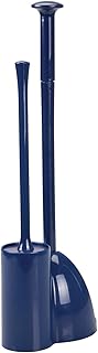 mDesign モダン スリム コンパクト 自立式 プラスチック トイレ ボウル ブラシ クリーナー プランジャー コンボセット ホルダー キャディ付き バスルーム 収納 整理 - カバー付き蓋ブラシ Pack of 1 ブルー 9389MDBSTEU