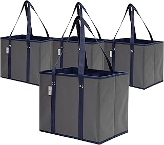 | 大型折りたたみ式ショッピングトートボックスバッグ 食料品用 | 長いハンドル 高耐久ショッピングバッグ