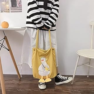 トートバッグ キャンバスバック ショッピングバッグ女性コーデュロイショルダーバッグかわいいアヒル刺繍ストライプキャンバスハンドバッグエコぬいぐるみ布トートソフトショッピングバッグ女の子YellowHat
