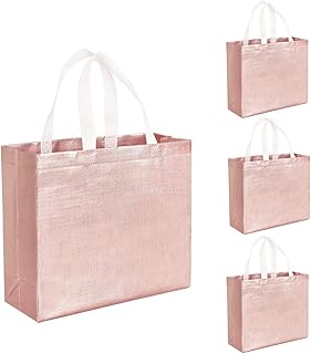おしゃれで繰り返し使えるショッピングバッグ 12個セット 光沢のあるグリッター 再利用可能な食料品バッグ ハンドル付き 不織布 ファッショナブル トートバッグ ギフト トートバッグ レディース 食料雑貨 ウェディング ブライズメイド 誕生日パーティー