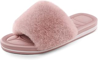 DREAM PAIRS レディース ハウス 低反発素材 ファジー 矯正スリッパ アーチサポート オープントゥ 快適 ファースライドサンダル