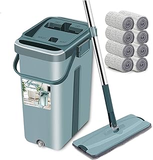 Aifacayモップ フロアモップ 回転モップ モップバケツ フロアワイパー フロア用掃除道具 バケツ付き カラ拭き 水拭き 乾湿両用 伸び縮みタイプ 360度回転 長さ調節可能 ステンレスポール 腰曲げず 汚れ水分け 手洗い不要 モップバケツセット 洗浄二槽式 丸洗い 部屋掃除 マイクロファイバーパッド 取り替えパッド8枚付き(ノルディックグリーン)