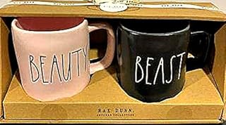 Rae Dunn'BEAUTY & BEAST' マグセット - ピンク&ブラック - セラミック - バレンタインデーギフト とても珍しい!