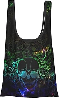 カラフルなスカル エコバッグ 買い物バッグ コンビニバッグ おしゃれ 折りたたみ コンパクト 軽い 大容量 収納 防水 男女兼用
