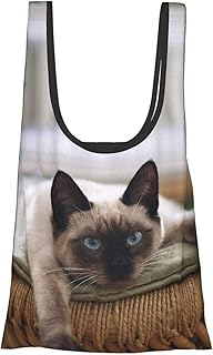 かわいい シャムタイ猫 エコバッグ 買い物バッグ コンビニバッグ おしゃれ 折りたたみ コンパクト 軽い 大容量 収納 防水 男女兼用