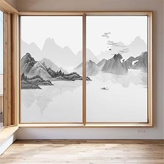幅50x長80cm 山水画 窓用フィルム 目隠しフィルム 目隠しシート めかくしシート 断熱シート すりガラス調 水で貼る 何度も貼り直せる 浴室 風呂 玄関目隠し 窓ガラスフィルム TD015